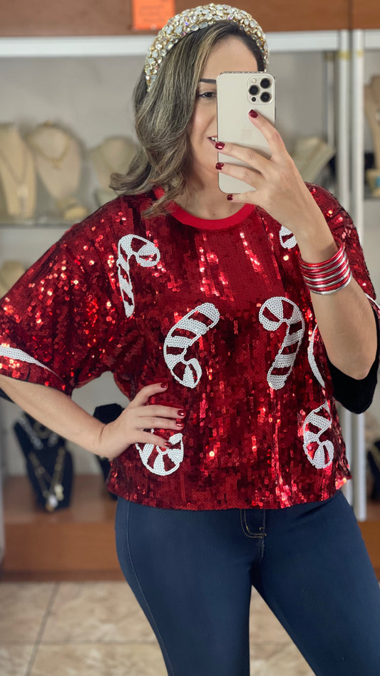 Candy Cane Sequins Top