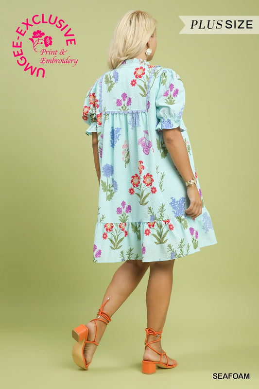 Multi Flower Print V-Neck Dress (PLUS)