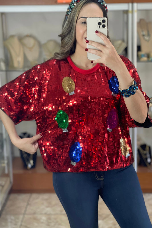Christmas Lights Sequins Top