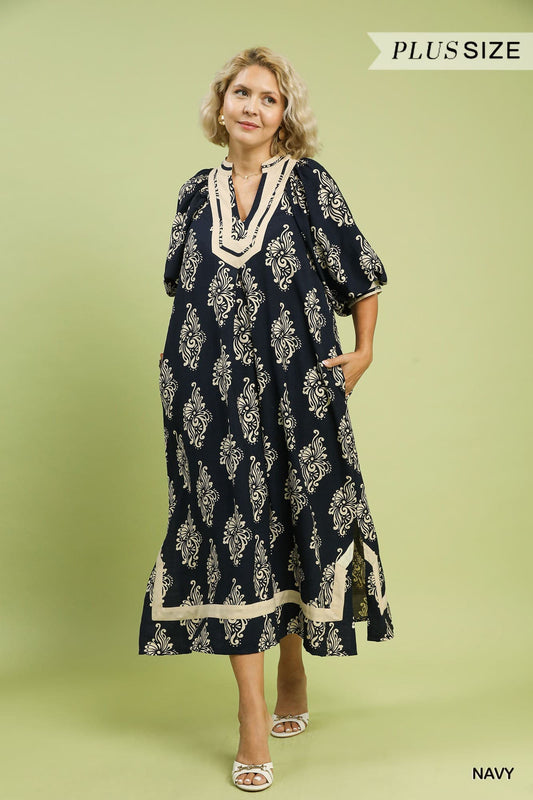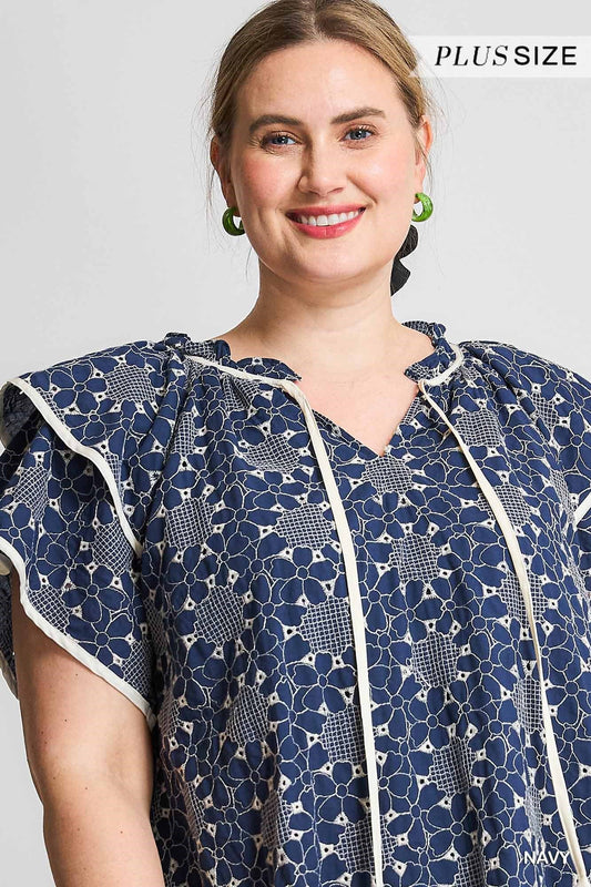Navy Eyelet Tiered Mini Dress (PLUS)
