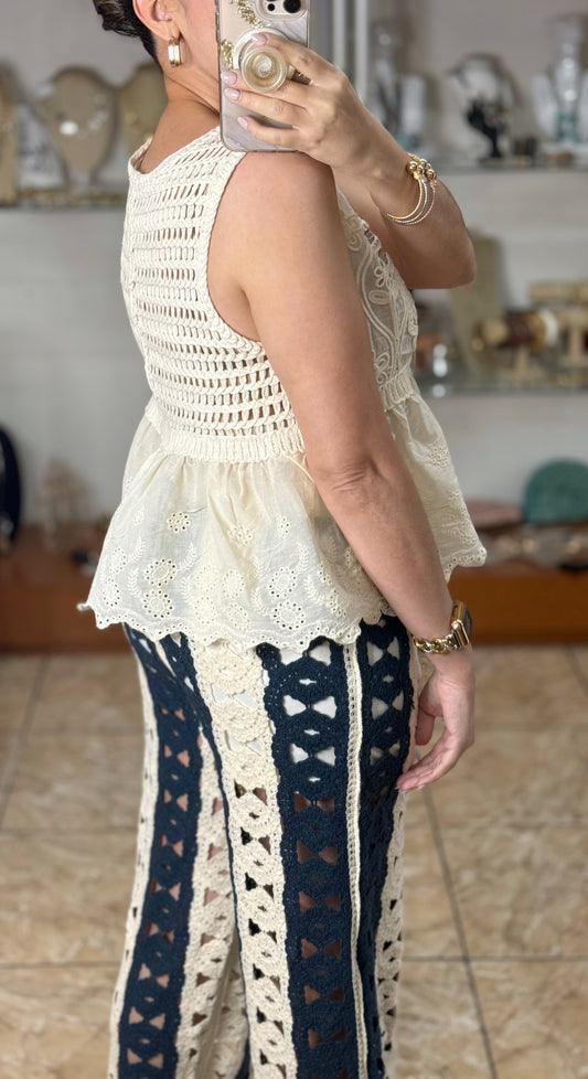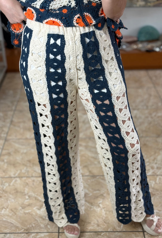 Cream/Navy OS Crochet Pant (NO RETURNS OR EXCHANGE) (TOP SOLD SEPARATELY)