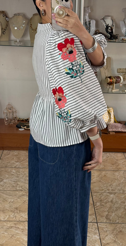 Stripes and Flowers Peplum Top
