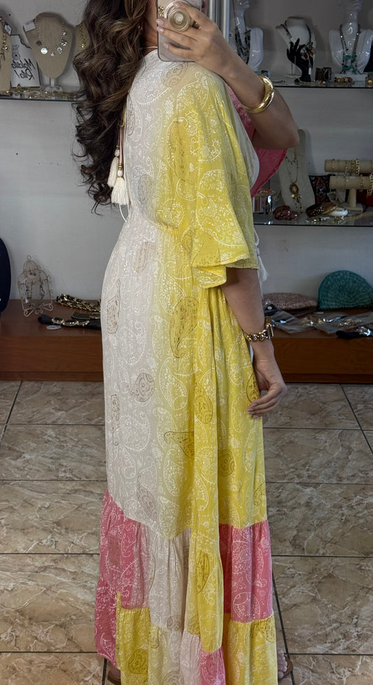 Paisley Yellow/Pink OS Maxi Boho Dress (NO RETURNS OR EXCHANGE)