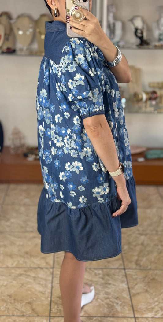 Eyelet/Stripes Button Down Mini Dress (NO RETURN OR EXCHANGE)