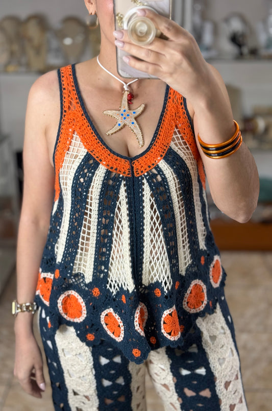 Navy/Orange Mix Crochet OS Top (NO RETURNS OR EXCHANGE) (PANT SOLD SEPARATELY)