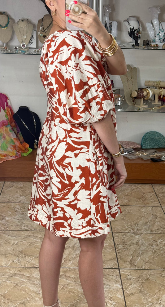 Deep V Neck OS Linen Dress (NO RETURNS OR EXCHANGE)