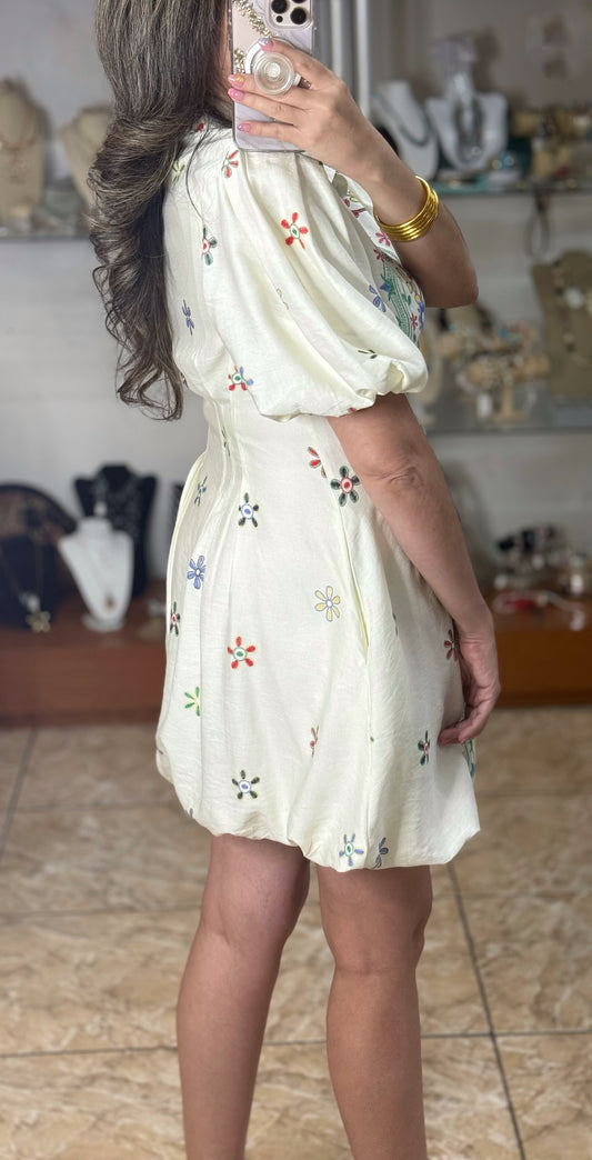 Puff Sleeves Bubble Floral Dress