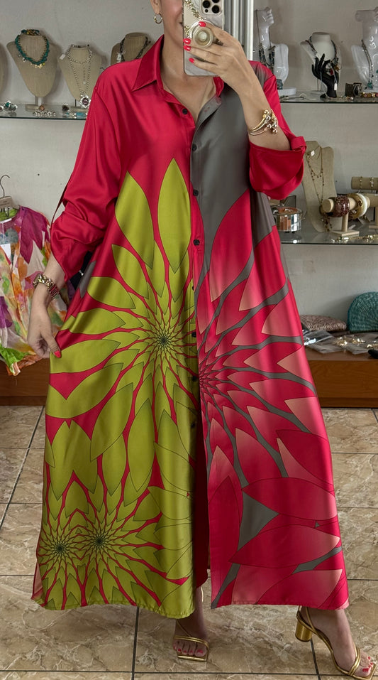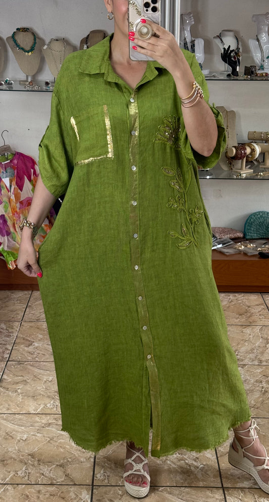 Gold Details Button Down OS Linen Maxi Dress (NO RETURNS OR EXCHANGE)