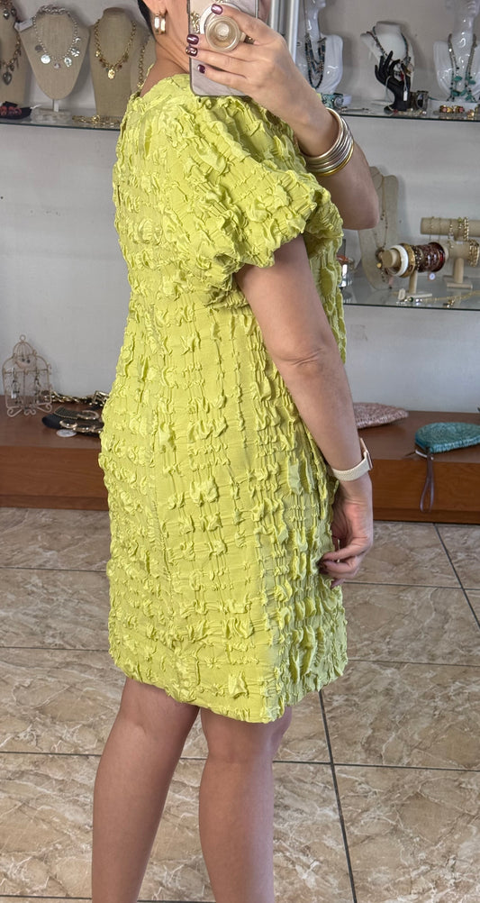 Pistachio Textured Round Neck Mini Dress