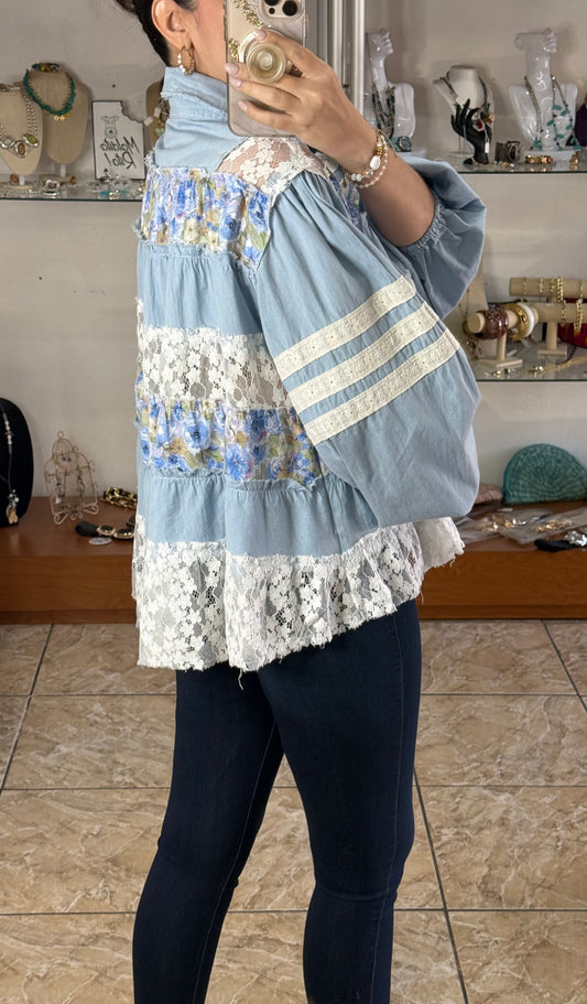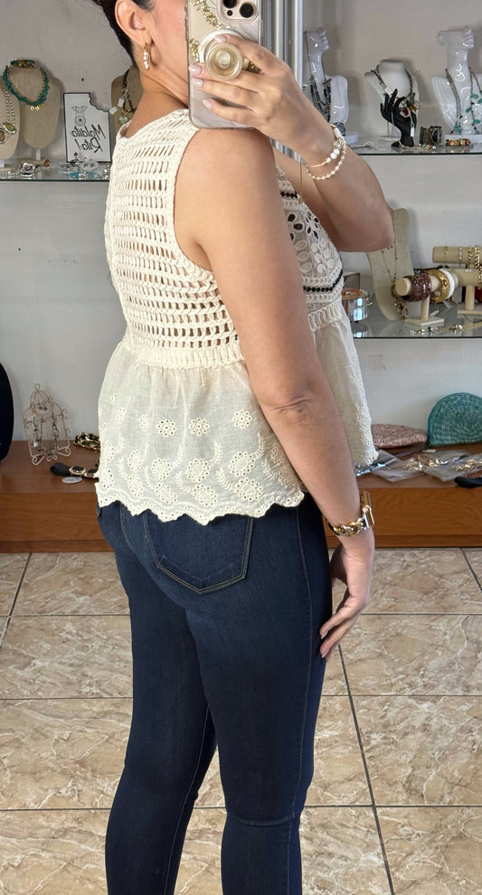 Cream/Lilac Floral Lace Top