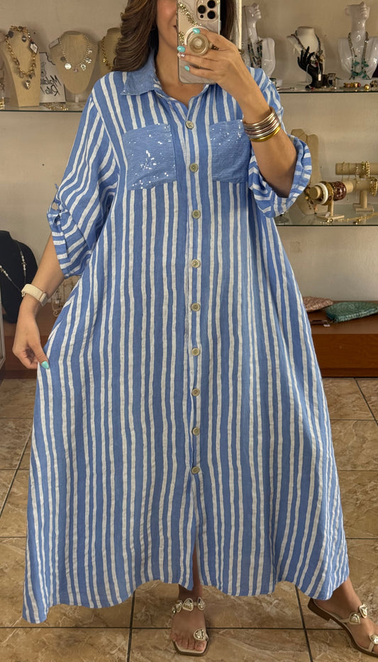 Stripes Button Down OS Linen Maxi Dress (NO RETURNS OR EXCHANGE)