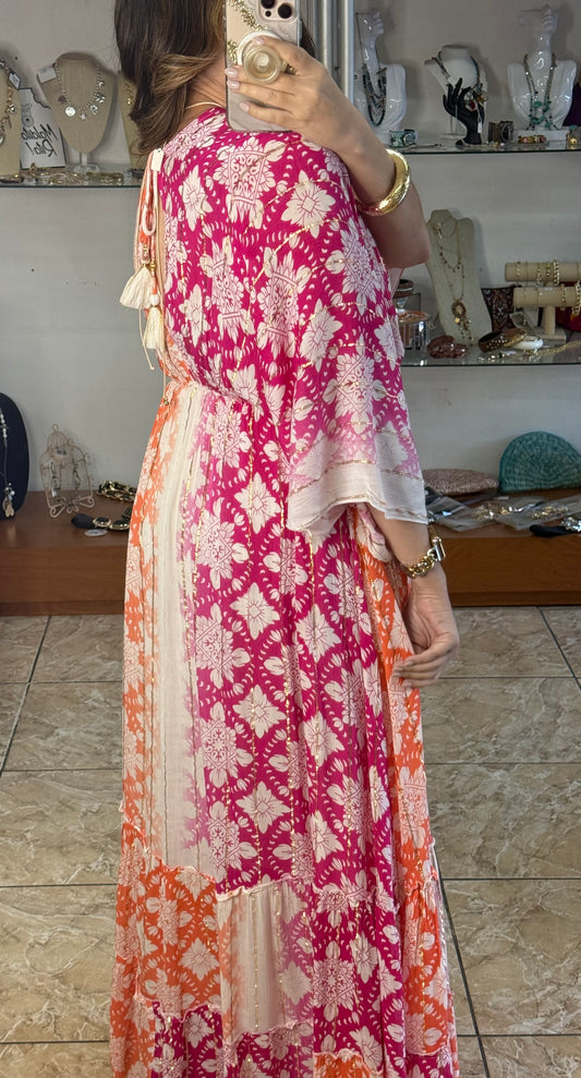 Pink/Orange OS Boho Maxi Dress (NO RETURNS OR EXCHANGE)