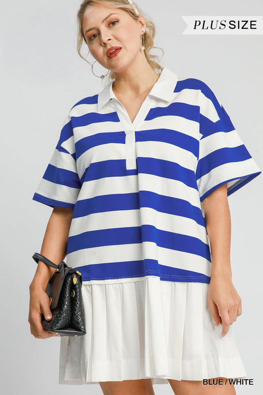 Stripes Polo Pleated Mini Dress (PLUS)