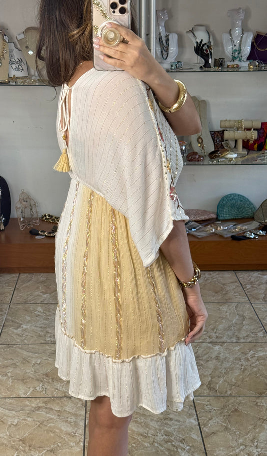 Sequins Floral Embroidered OS Boho Short Dress (NO RETURNS OR EXCHANGE)