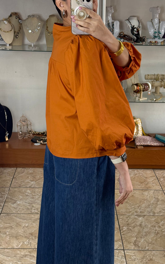 Long Sleeves Caramel Embroidered Peplum Top