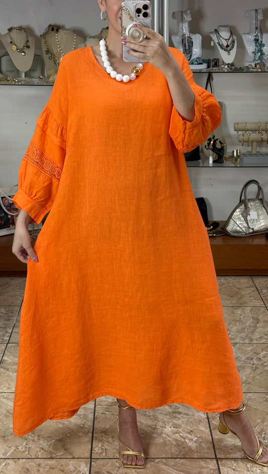 Ruffle Details OS Linen Maxi Dress (FINAL SALE)