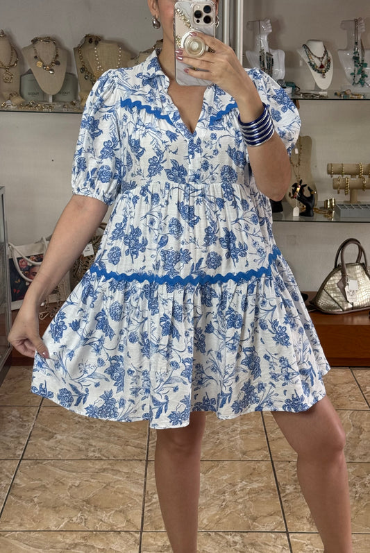 Brown Flowers OS Linen Dress (FINAL SALE)
