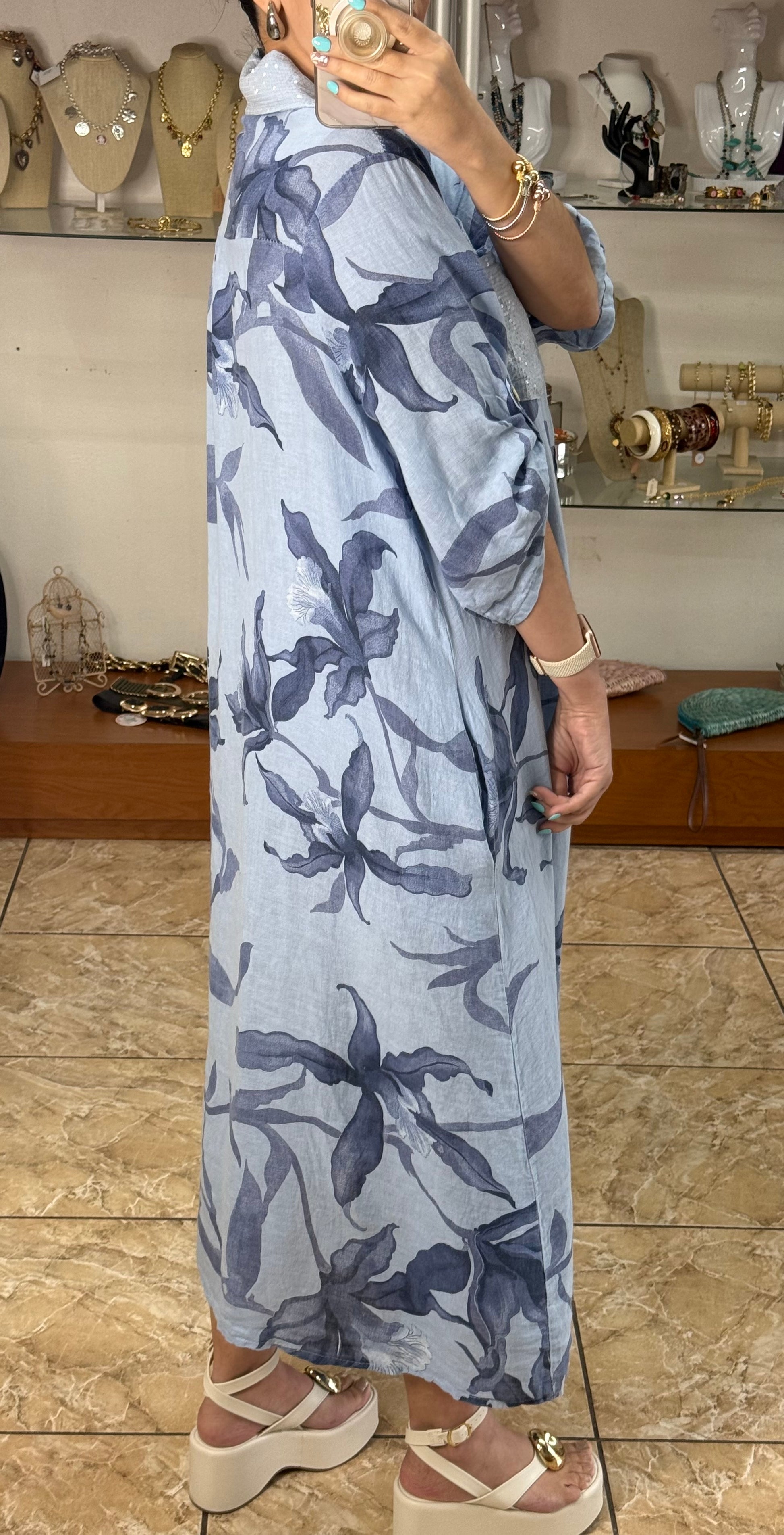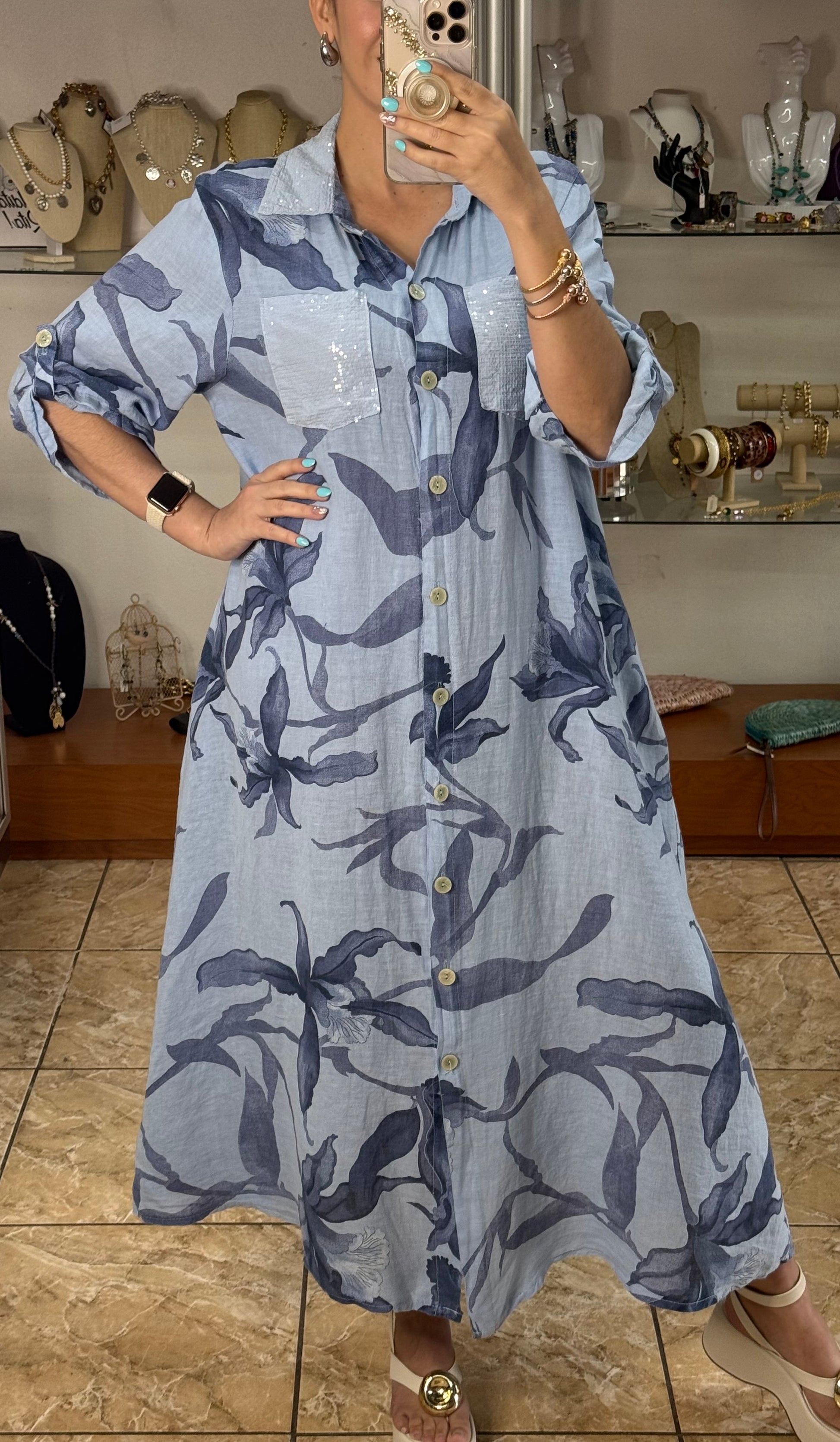 Blue Linen OS Button Down Maxi Dress (FINAL SALE)