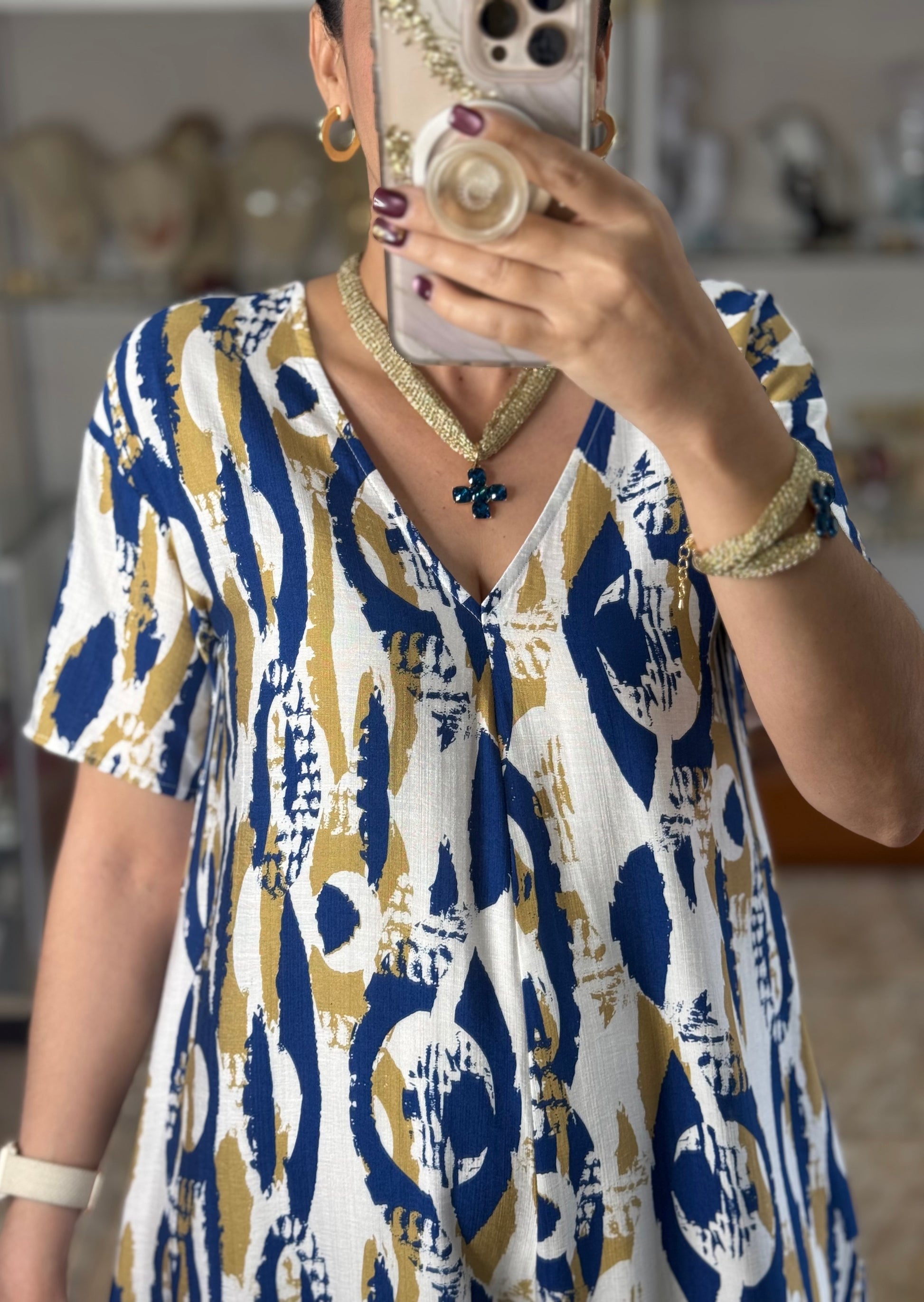 Blue Mix Short Sleeves Boho Jumpsuit