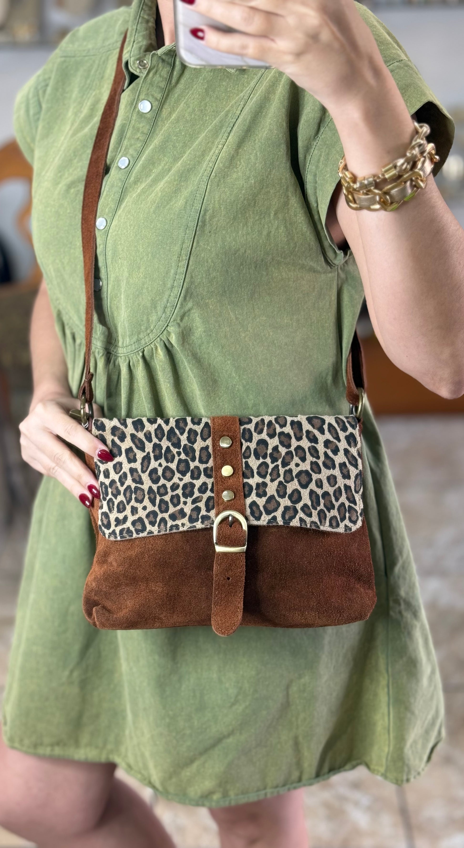 Brown/Leopard Crossbody Leather Bag (FINAL SALE)