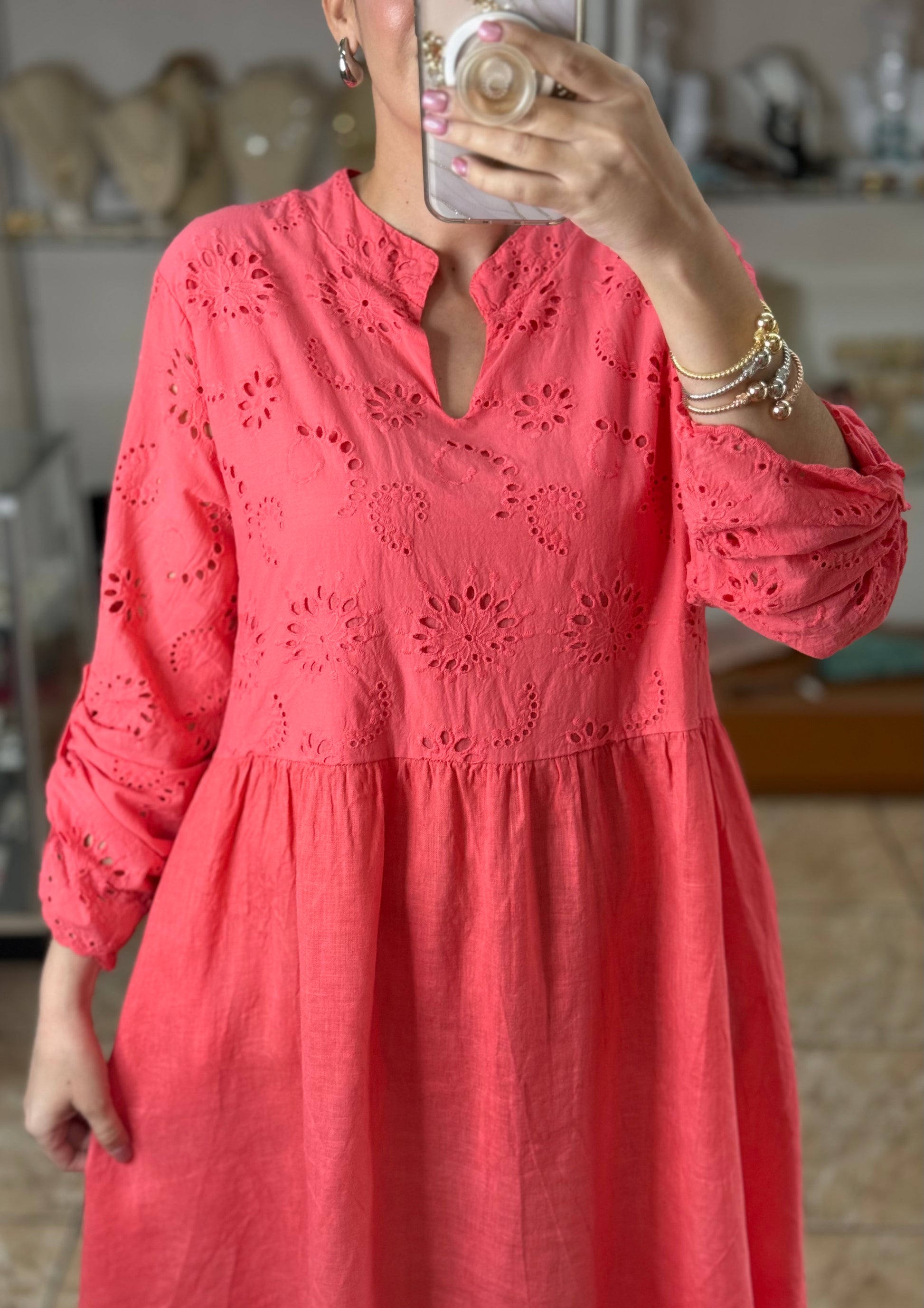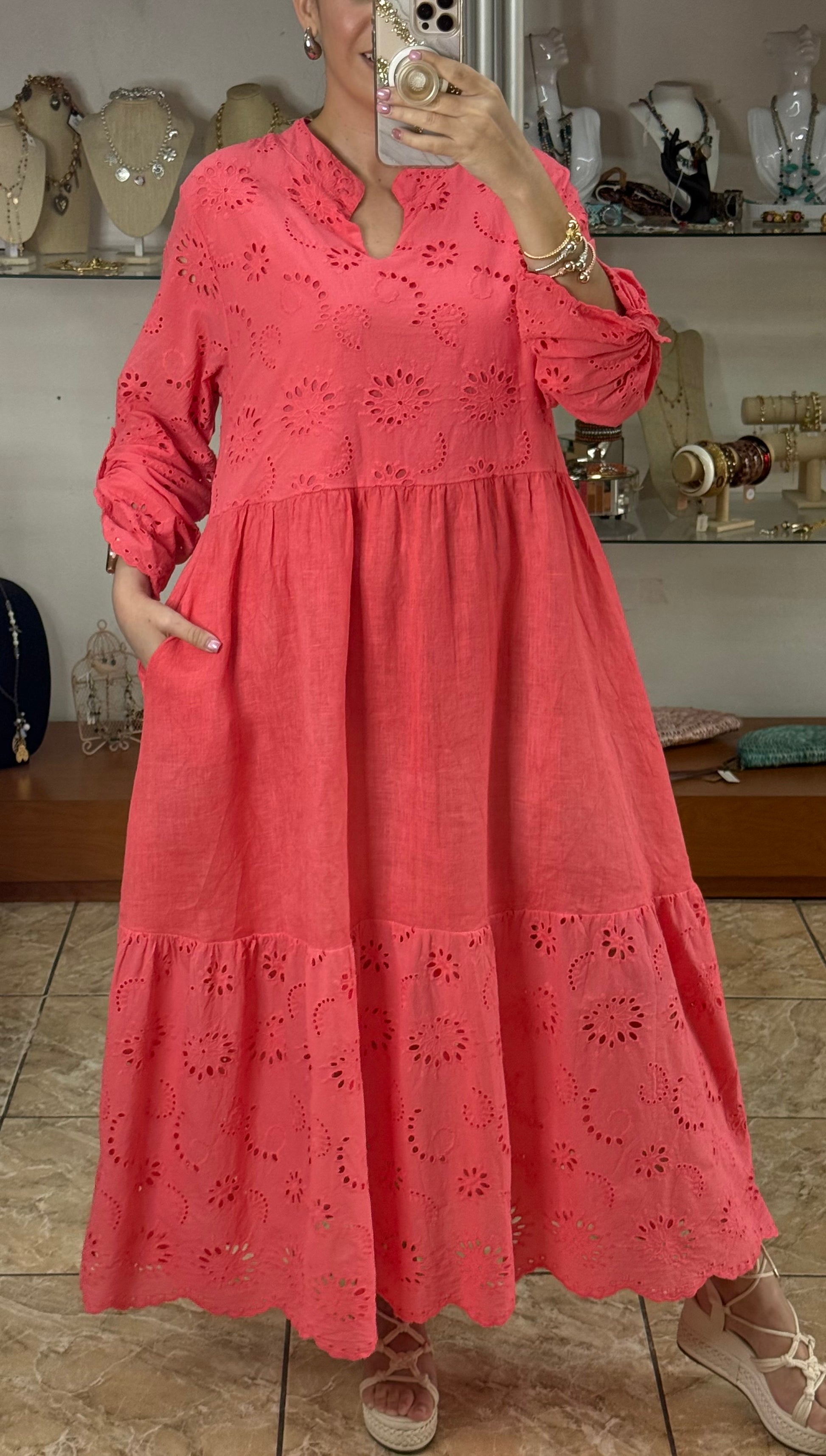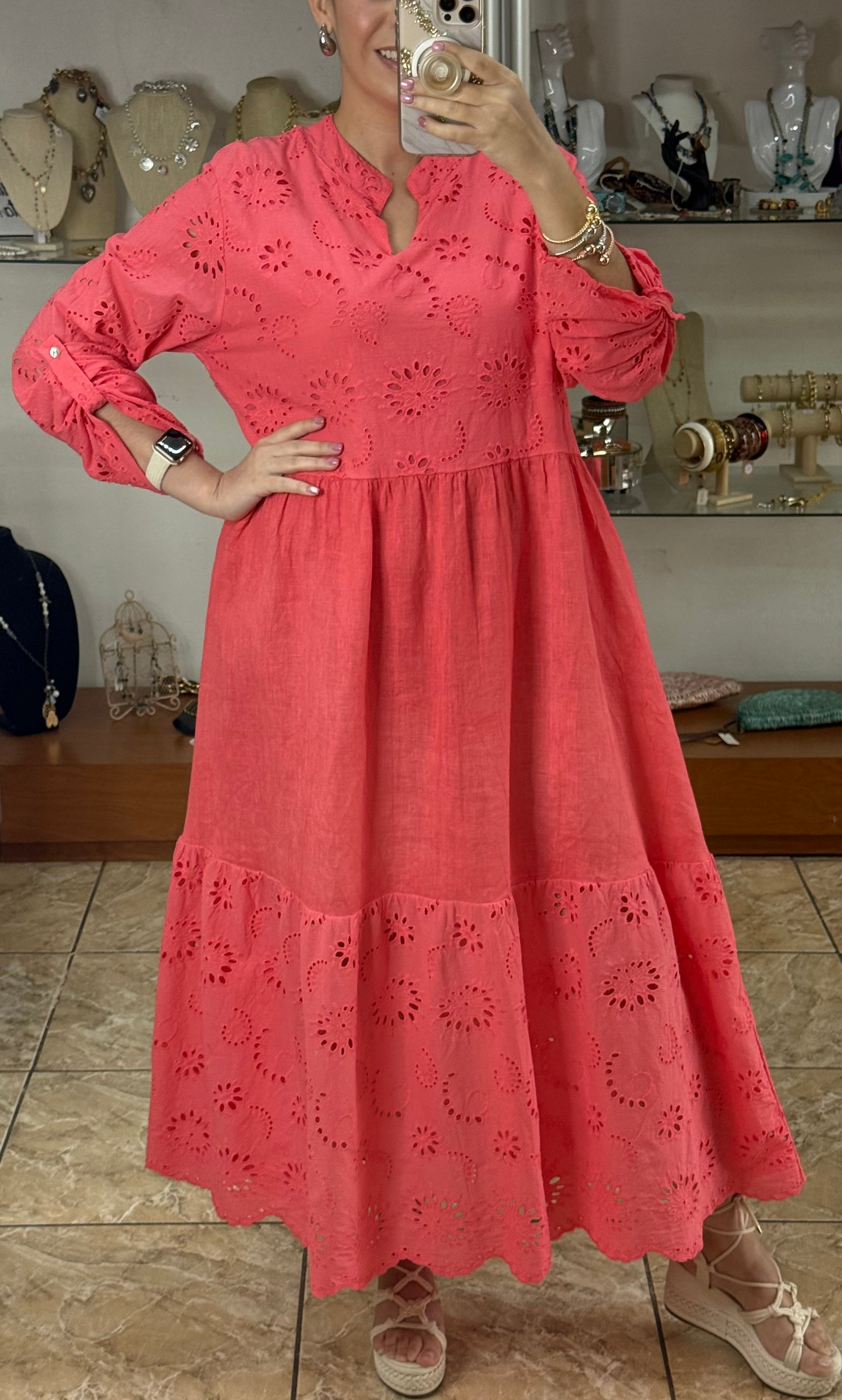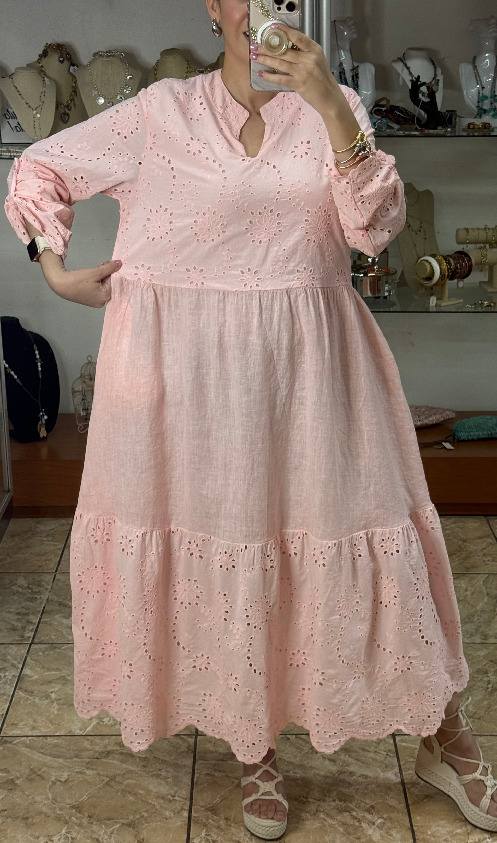 Linen/Eyelet OS Maxi Dress (FINAL SALE)