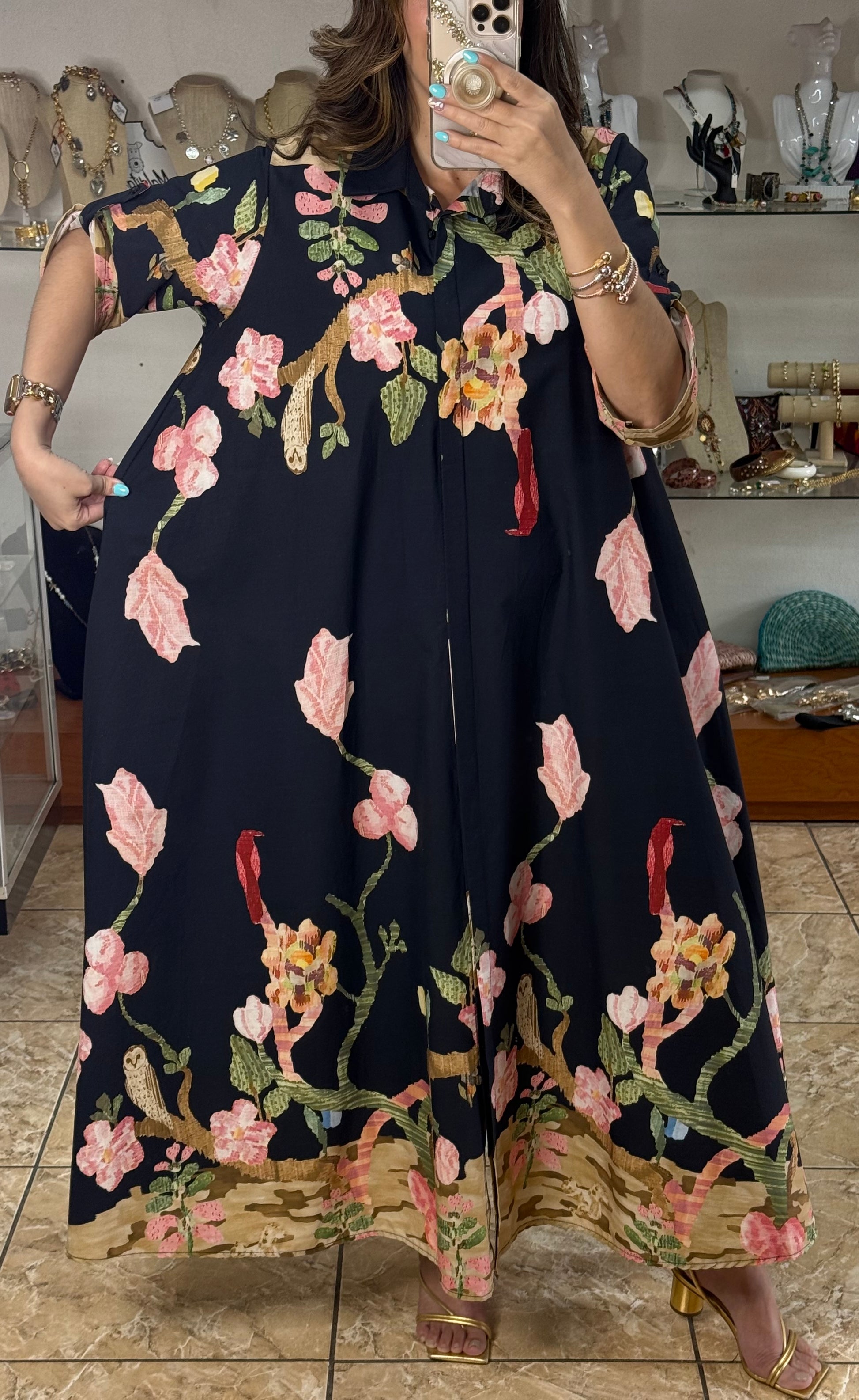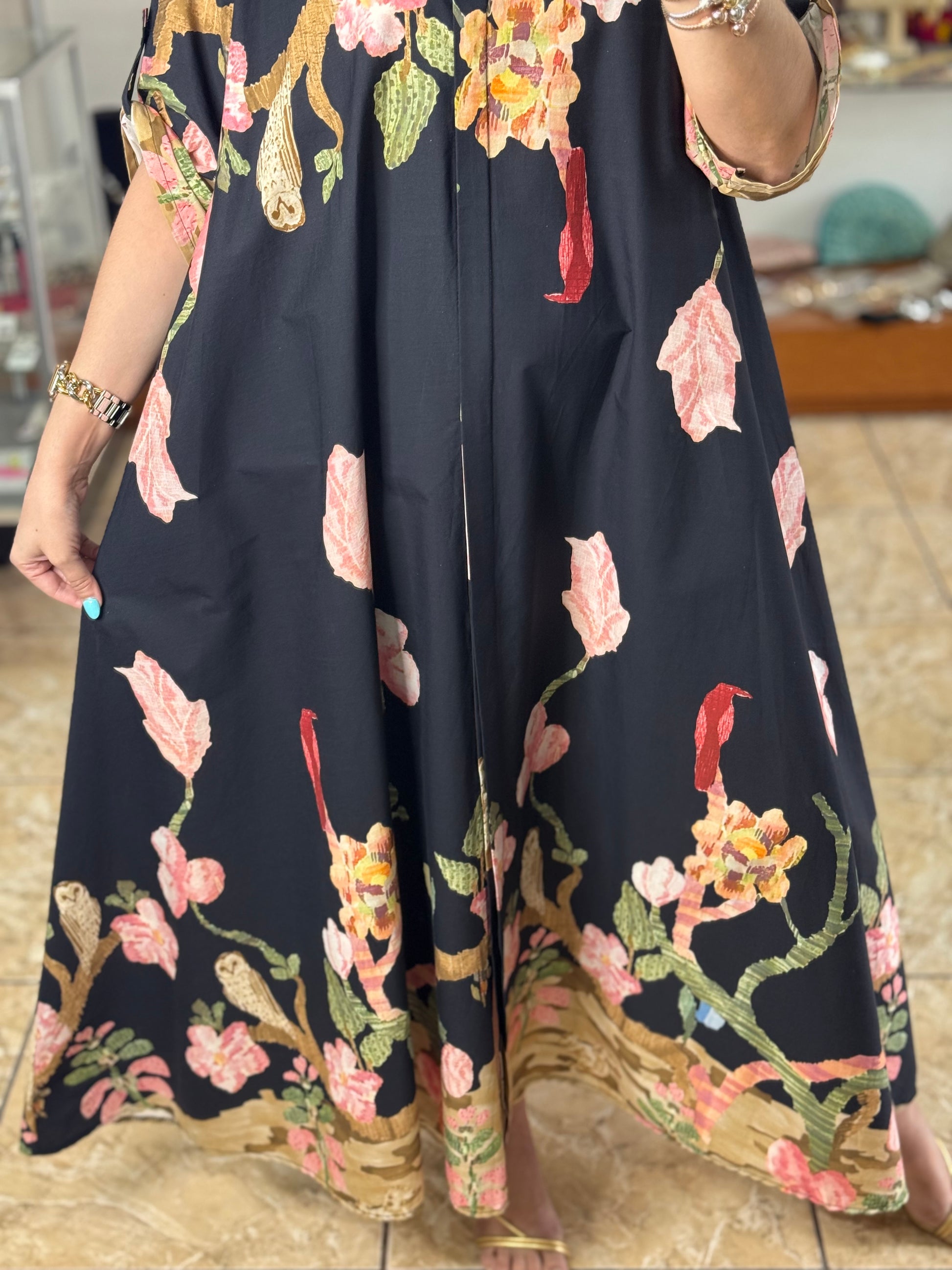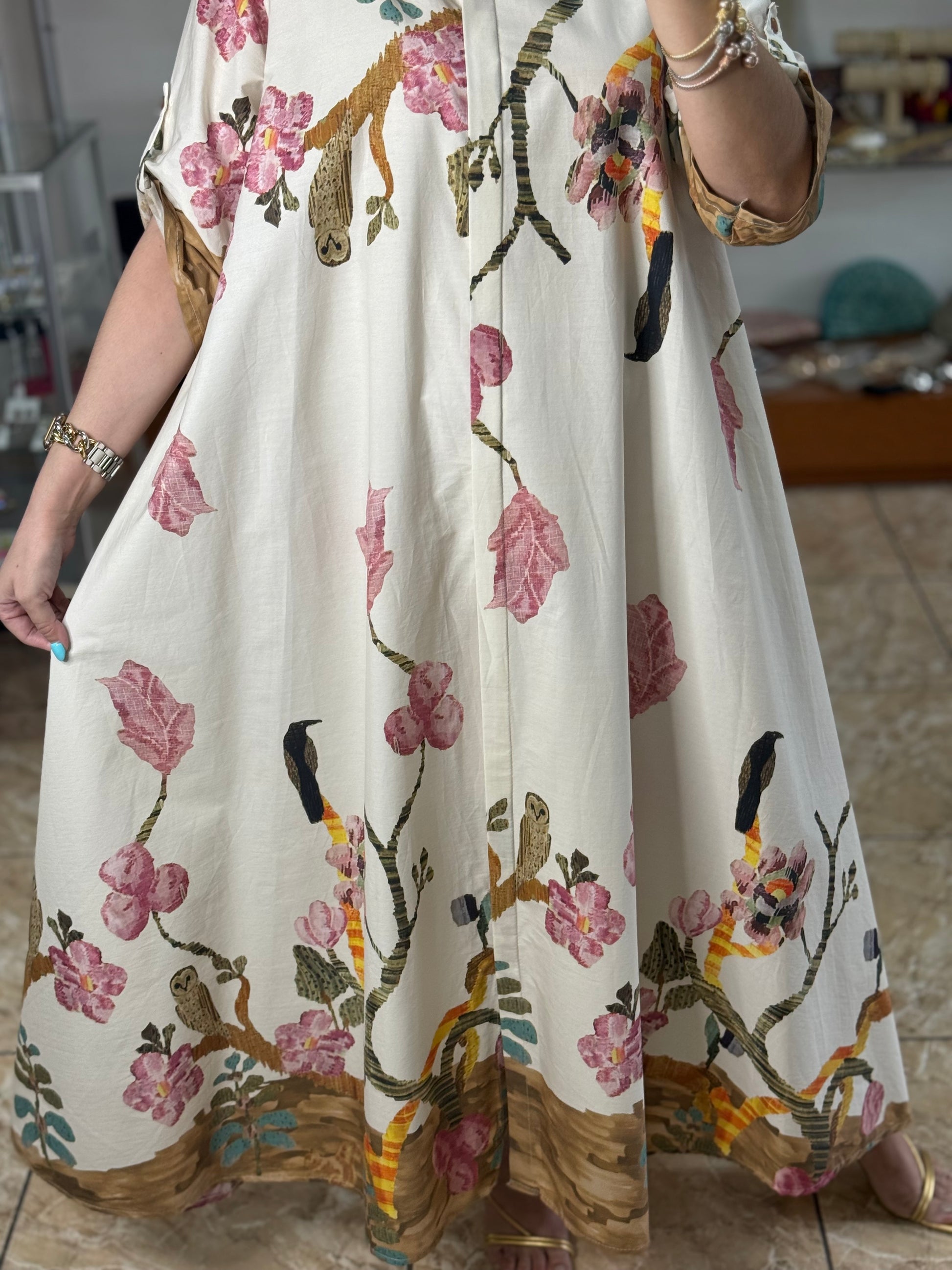 OS Flowers and Birds Maxi Dress (NO RETURNS OR EXCHANGE)