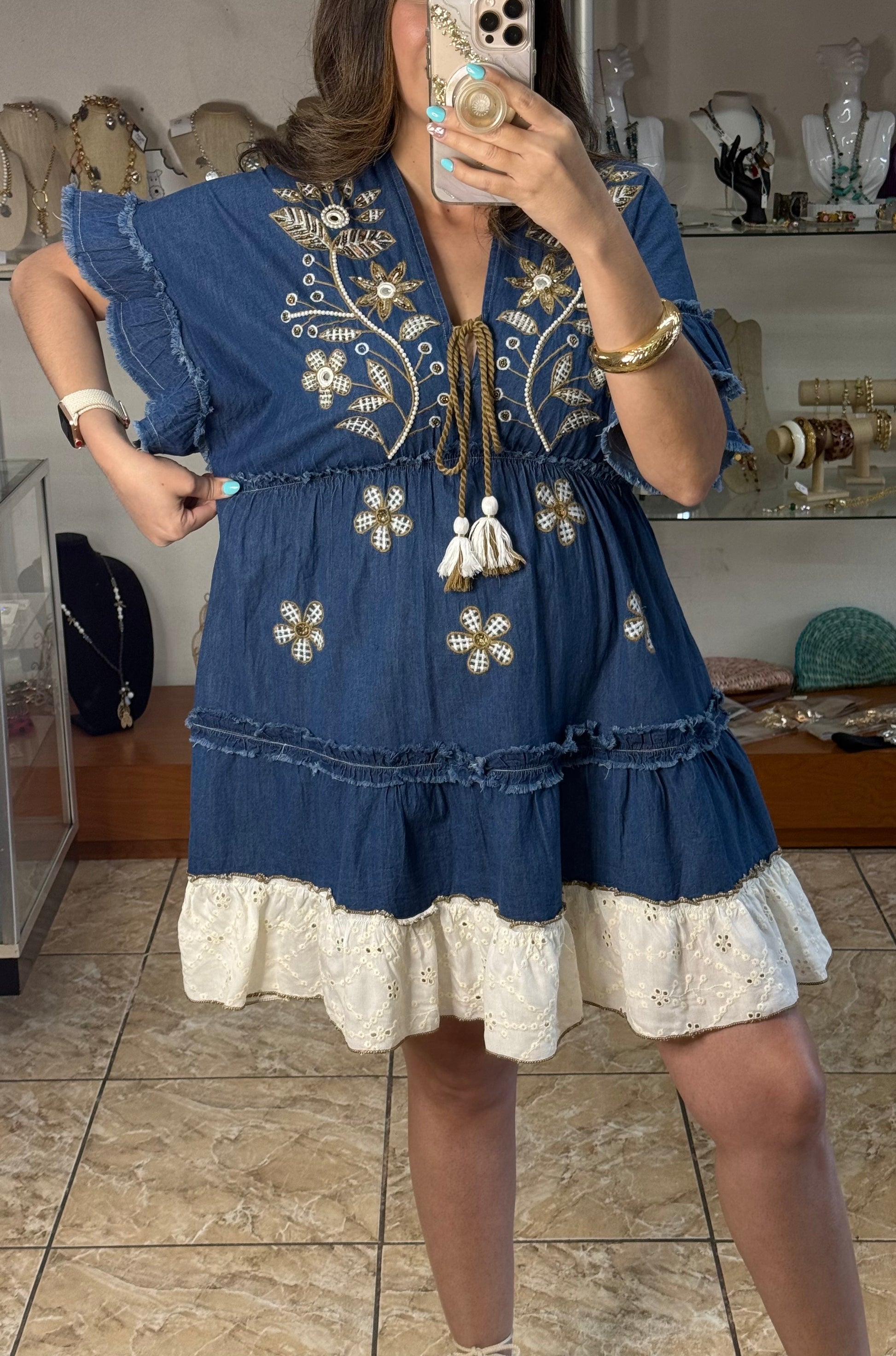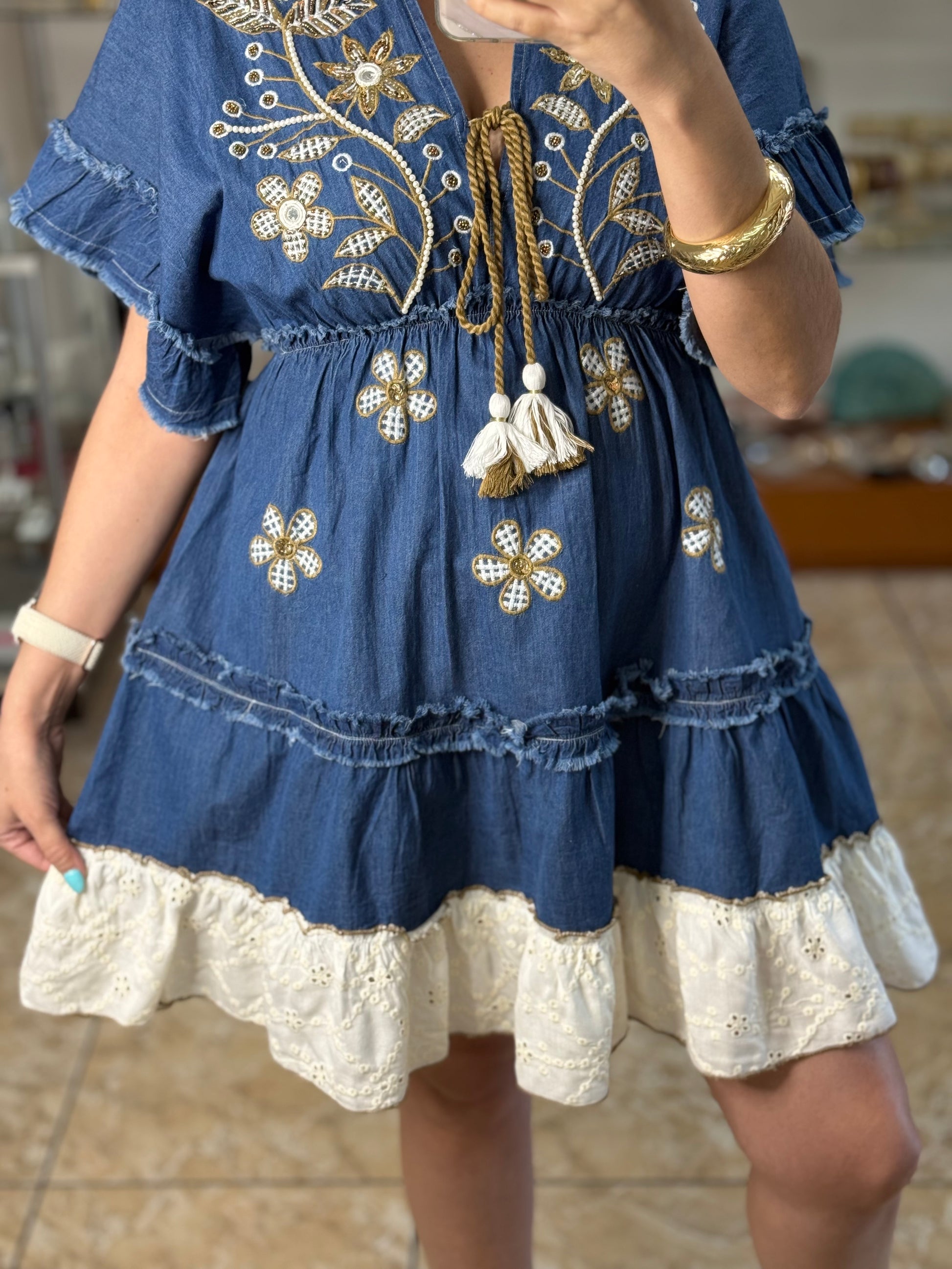 OS Short Embroidered Denim Dress (NO RETURNS OR EXCHANGE)