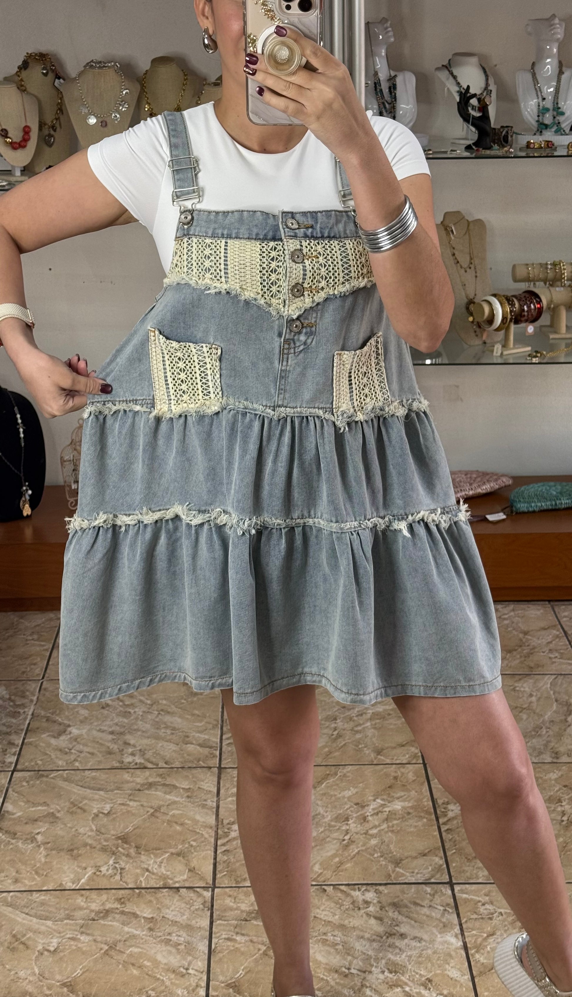 Overall Boho Denim Dress