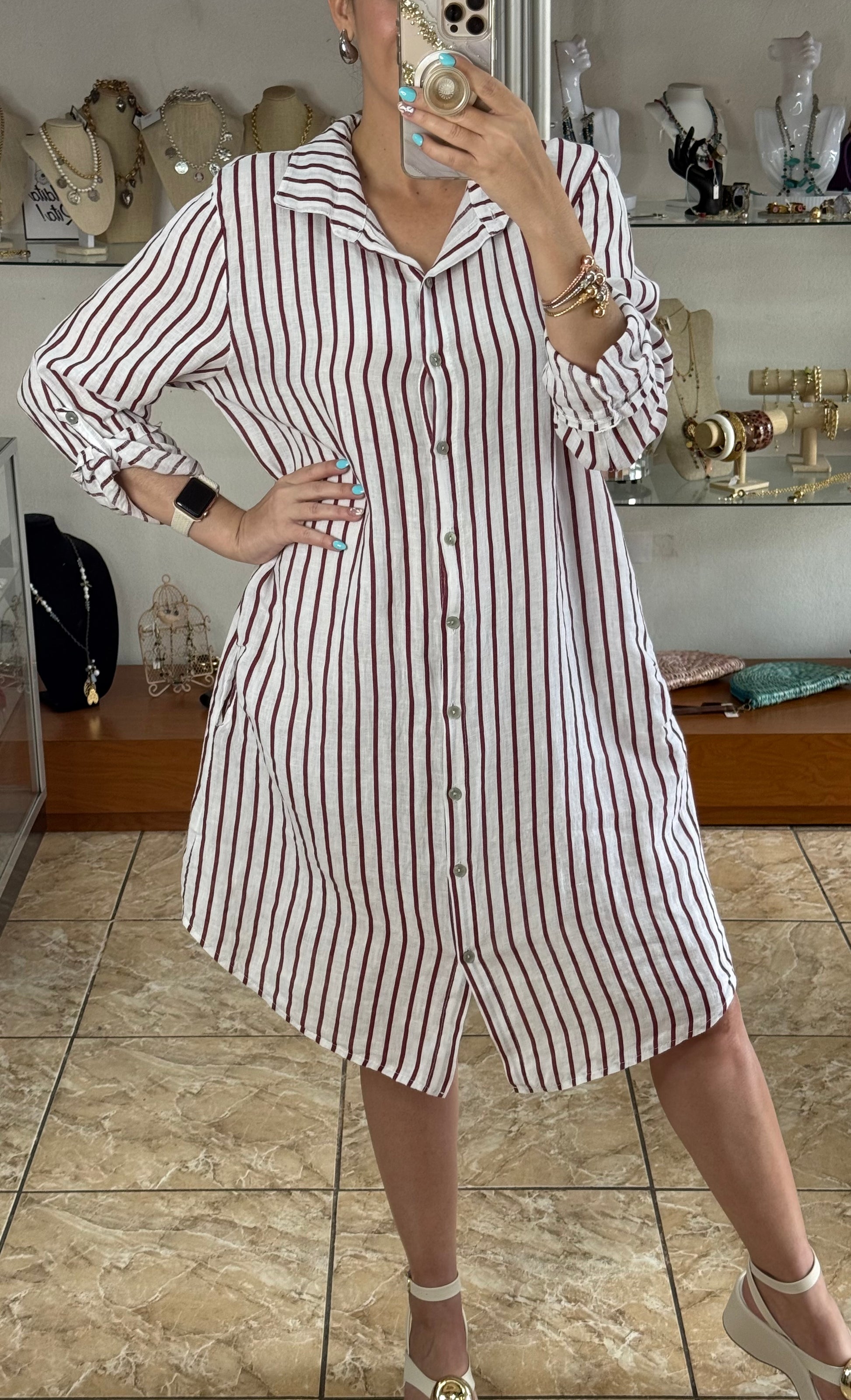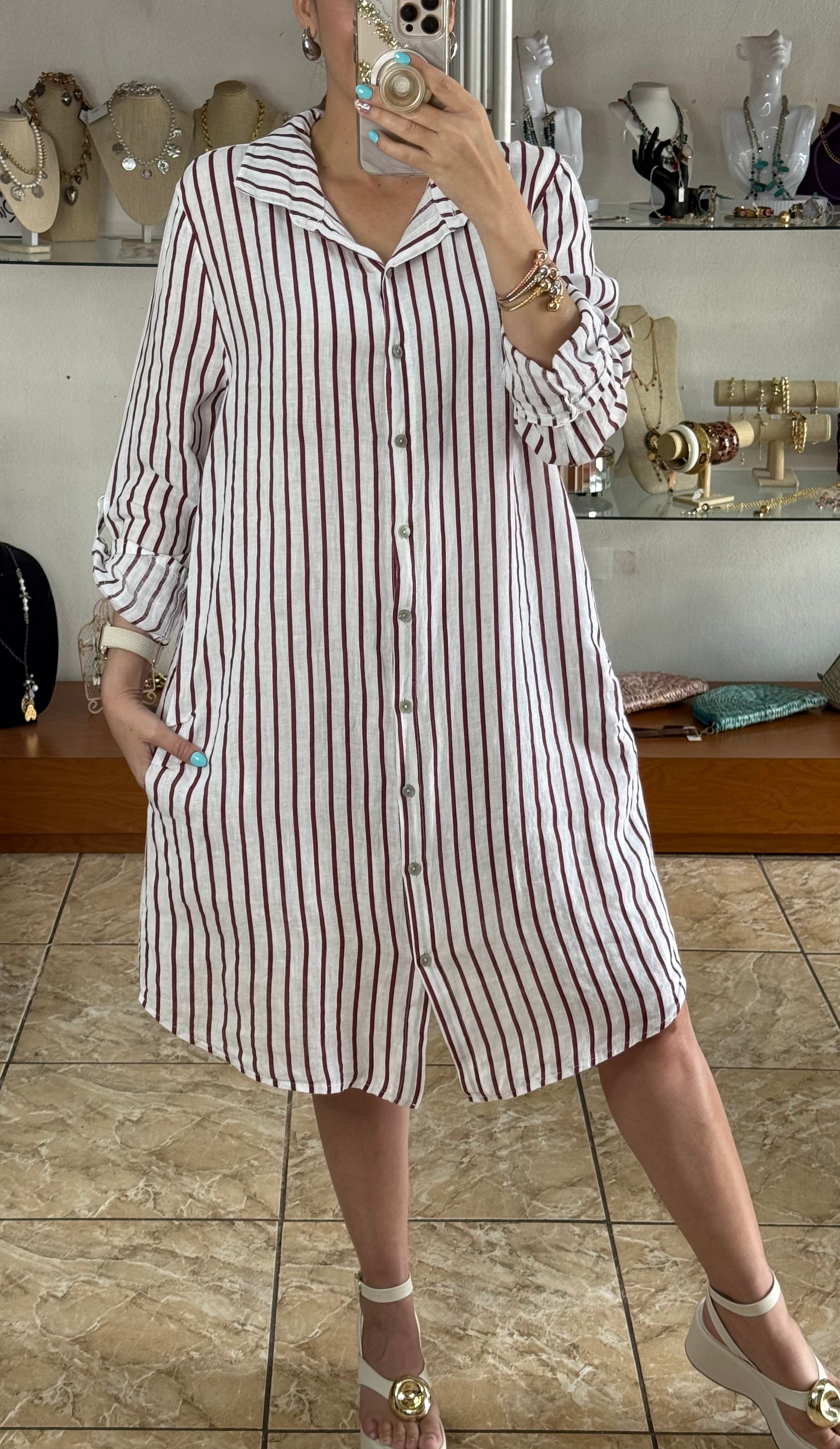 White/Wine OS Stripes Linen Dress (FINAL SALE)